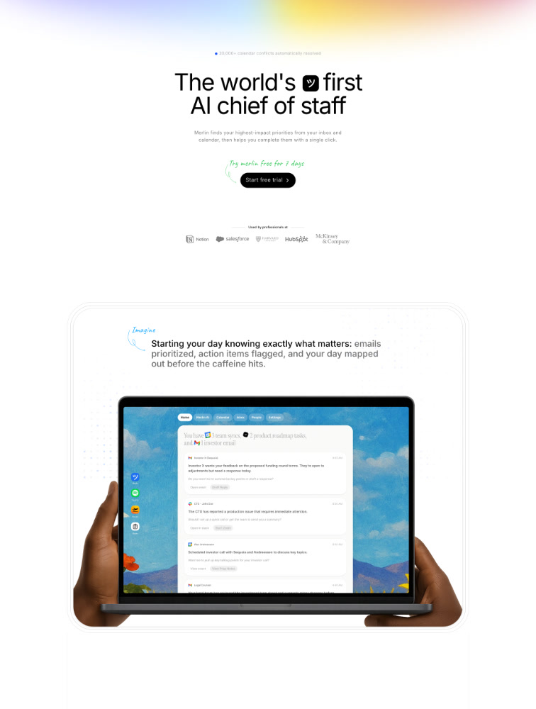 A curated collection of Productivity landing page design for your inspiration. Get inspired by real landing page examples, each review featuring a full screenshot and highlighting standout features.